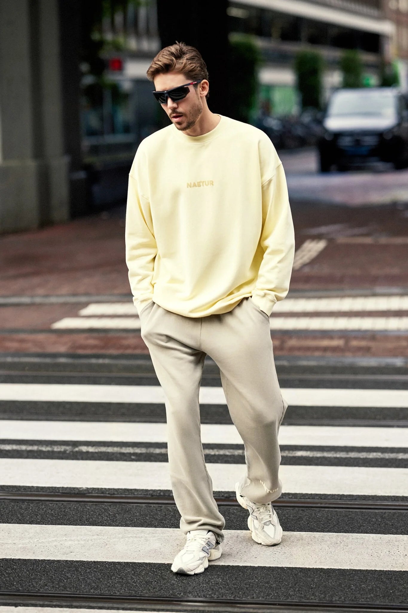 Introducing our all-time favorite crewneck sweater in fresh bright Lemon Yellow color. The loose-fitting style exudes a relaxed vibe and allows freedom of movement. Its lined construction with cover stitching ensures a high-quality finish. The sweater features wide ribbed cuffs and is made from breathable cotton fabric, making the sweater suitable for different seasons.