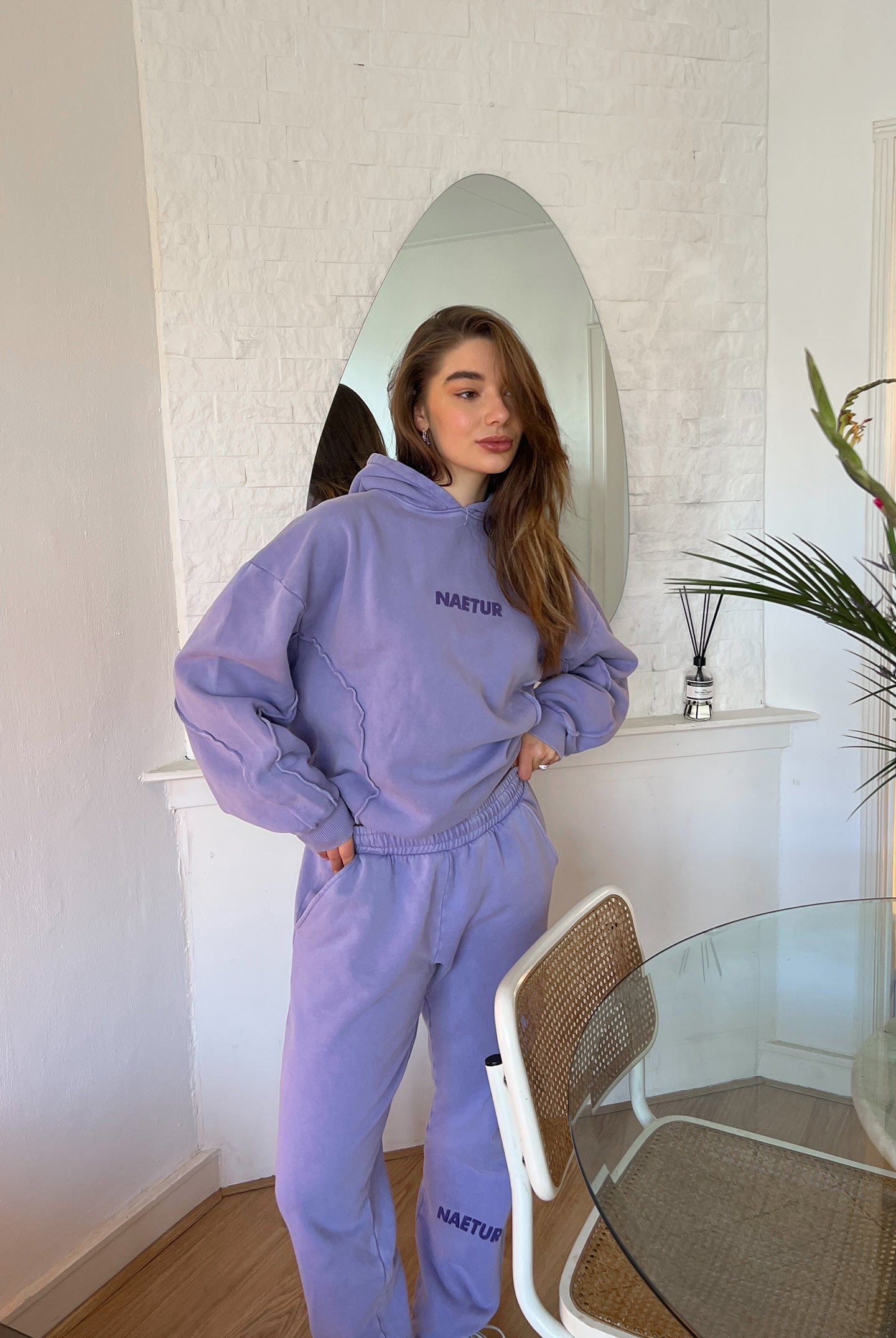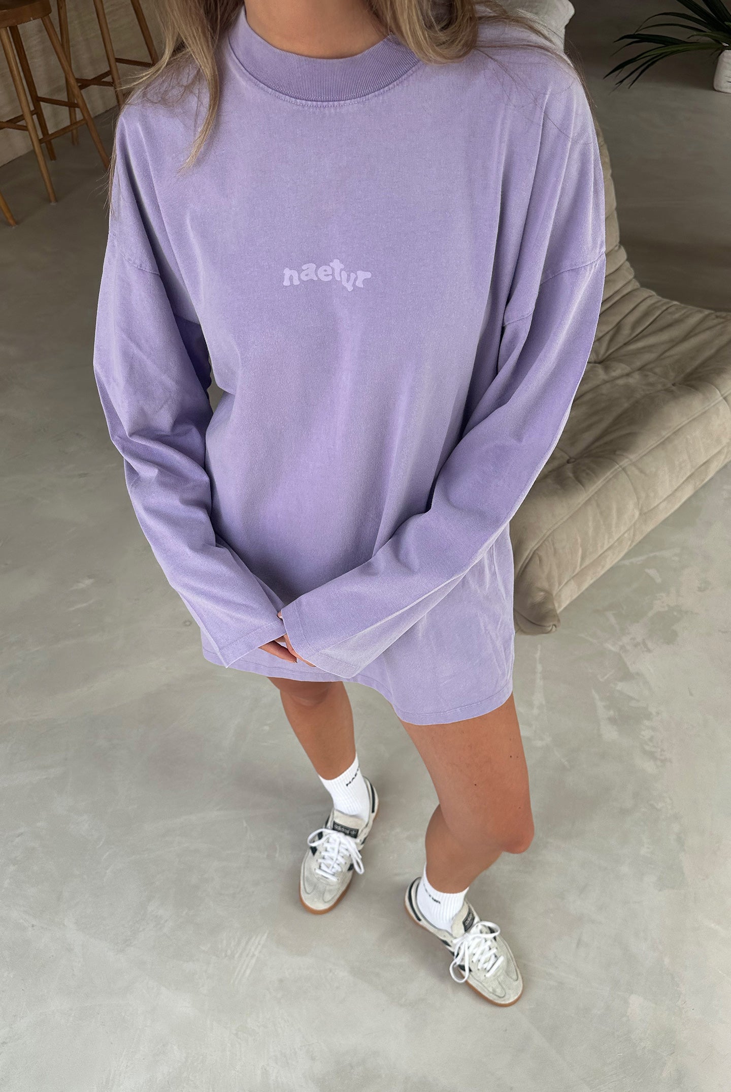 Introducing our all-time favorite crewneck sweater in fresh lilac color. The loose-fitting style exudes a relaxed vibe and allows freedom of movement. Its lined construction with cover stitching ensures a high-quality finish. The sweater features wide ribbed cuffs and is made from breathable cotton fabric, making the sweater suitable for different seasons.