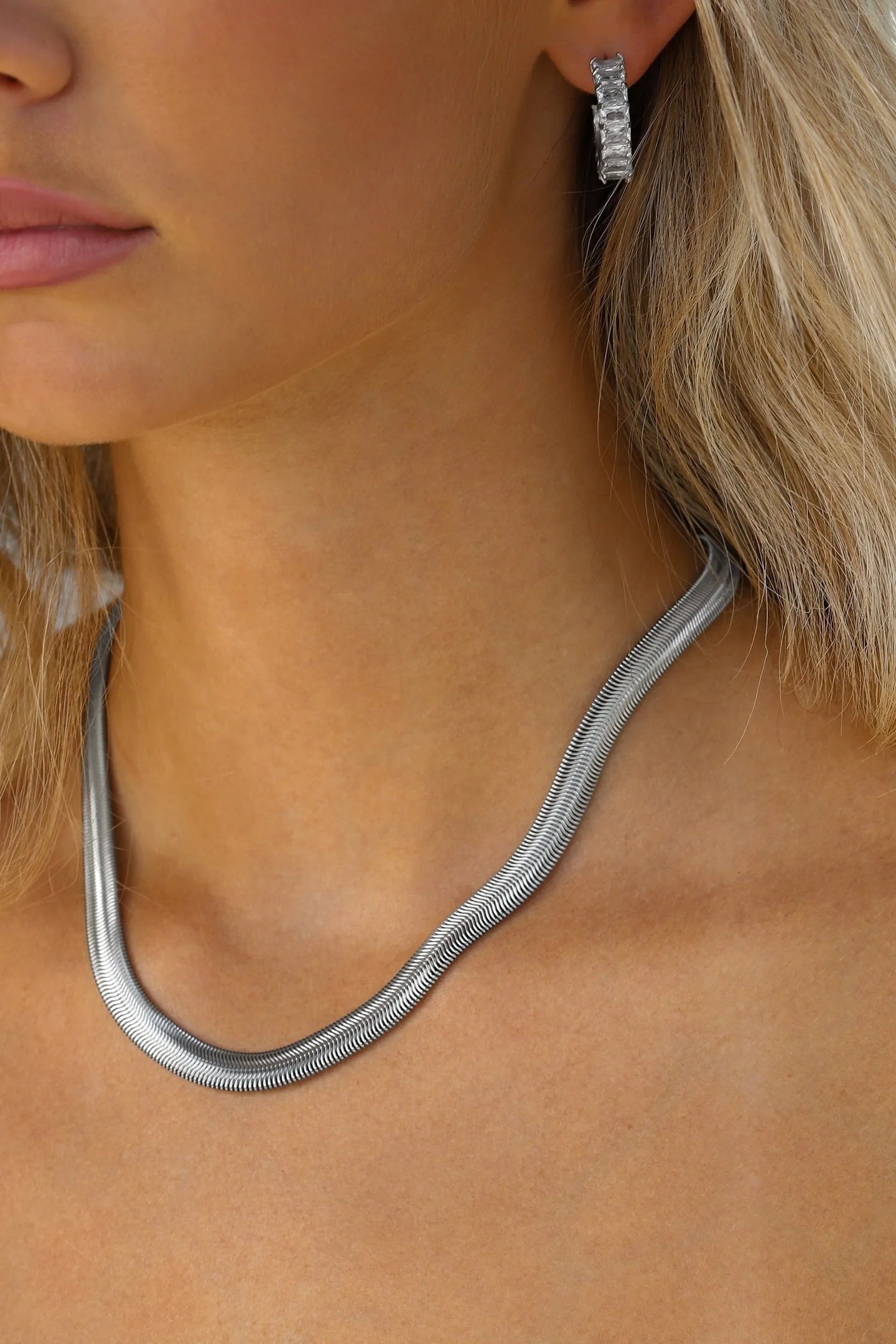 A bit chunky and sophisticated, our Bold Snake Chain Necklace is an absolute must-have! It is thé trend of this season! Wear it on its own as a statement piece, or layer it with our other fine daily necklaces. Also available in gold.