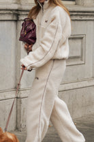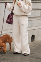 The Teddy Wide Leg Jogger in Cream blends softness and structure in the most effortless way. The relaxed wide leg fit creates movement and comfort, while the textured teddy fabric gives it that cozy feel.